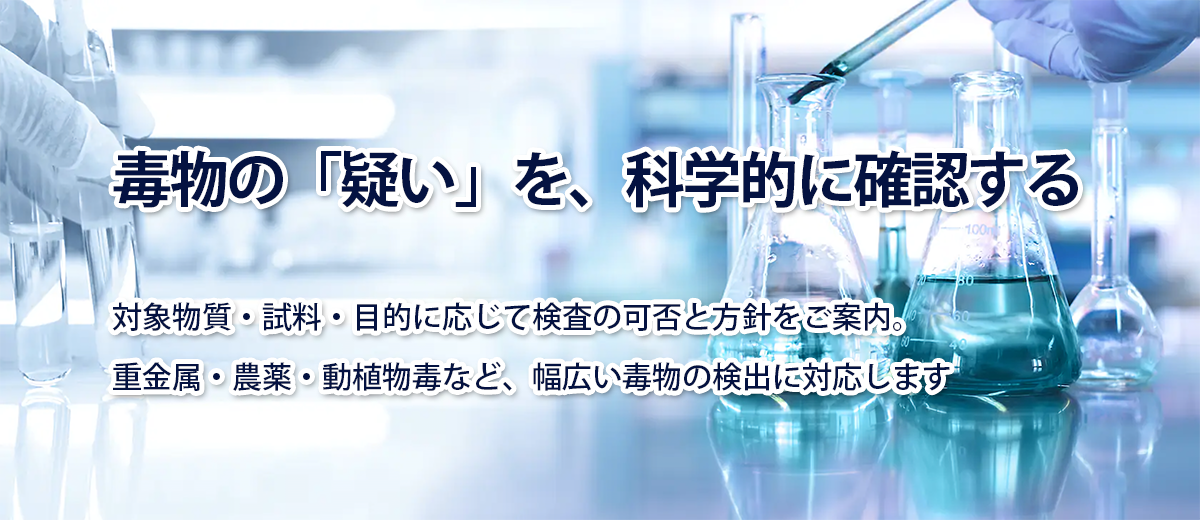 毒物が関係する事案は、状況によっては原因の特定や経緯の把握が難しくなることがあります。